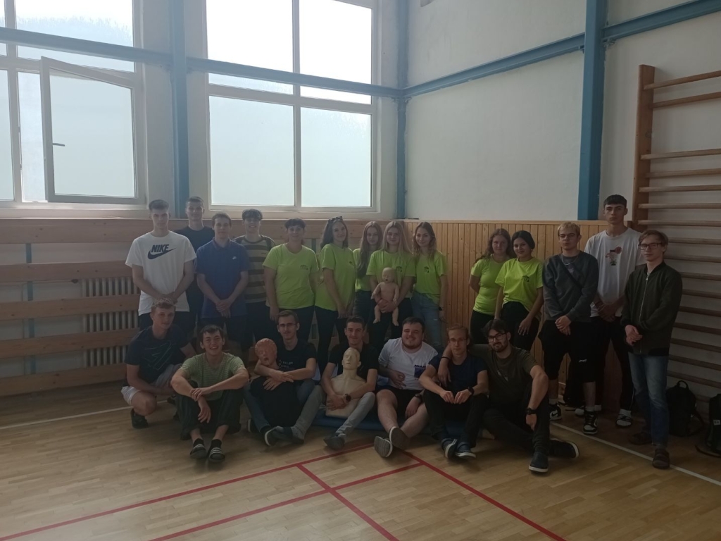 Dňa 19.6. 2023 sa žiačky Natália, Marianna, Žaneta, Miška, Timea z 2. PS A a žiačka Dominika z 1. PS B triedy učili žiakou Strednej priemyselnej školy techniky a dizajnu v Poprade základy prvej pomoci. Žiaci ale aj učitelia boli veľmi milí a spolupracovali z našimi dievčatami.