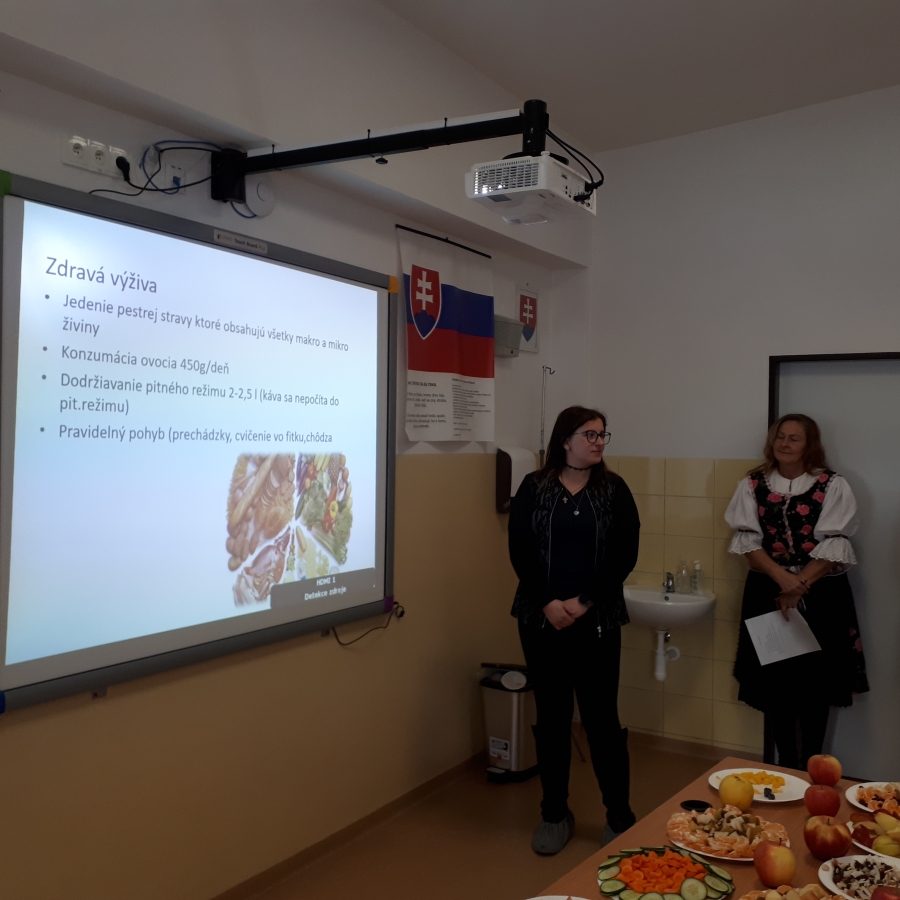 Svetový deň zdravej výživy, sme si tento rok vzhľadom k iným aktivitám pripravila až v novembri. Deň zdravej výživy zdôrazňuje potrebu zdravého stravovania sa, pretože výživa je významným faktorom životného štýlu, ktorý ovplyvňuje zdravie.Poskytuje nielen krytie základných potrieb energie a živín potrebných pre život, ale je spojená aj s emóciami, často pocitom uspokojenia. Výživa sa spoločne s fyzickou aktivitou a genetickou dispozíciou podieľa na výslednom výživovom stave jedinca. Ako vnímajú zdravý životný štýl so všetkými jeho atribútmi naši žiaci sme mali možnosť presvedčiť sa v pondelkových dopoludňajších hodinách, kedy každá trieda realizovala danú tému svojimi očami a vlastnými nápadmi. Svoje nápady premietli do zaujímavých prezentácií, kvízov, hádaniek a súťaží. V niektorých triedach jedli aj naše oči-krásne vyzdobené a pripravené boli stoly i pokrmy na nich. Ťažké bolo aj rozhodnutie, komu udeliť prvenstvo. Nakoniec predsa len predbehla počtom hlasov a na 1.mieste sa umiestnila I.PS B. No,našimi víťazmi boli aj ostatné triedy. Veríme, že sa táto akcia páčila všetkým a tešíme sa na Vaše nové nápady i recepty zase o rok.