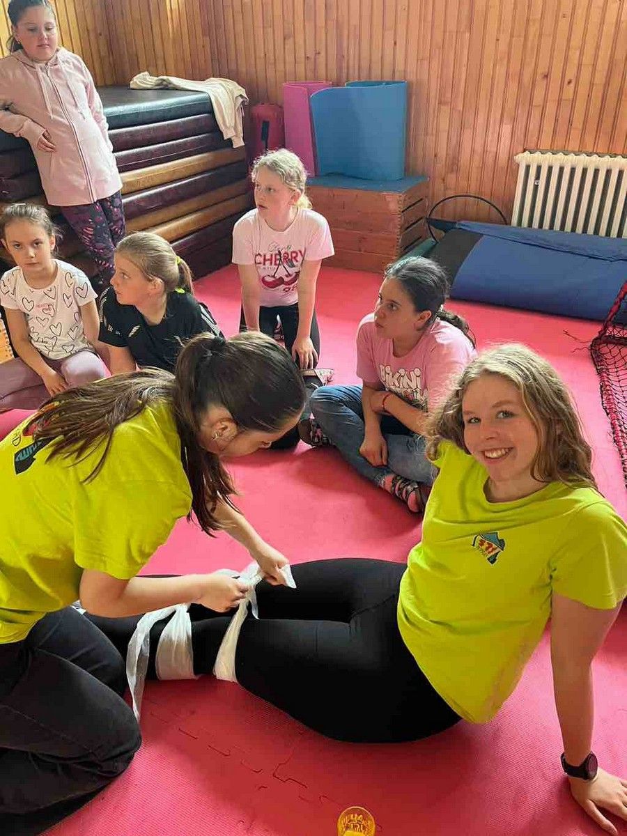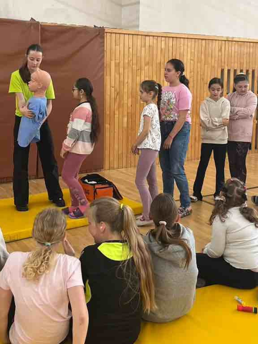 V utorok 03.06.2025 navštívili Simona Blahová, Dorota Lukačková, Alica Pavlíková a Michaela Hegedüšová základnú školu vo Važci. Poučili žiakov prvého stupňa o prvej pomoci pri rôznych život ohrozujúcich stavoch. Prešli si s nimi tiesňové čísla a ukázali im masáž srdca, Gordonove údery či Heimlichov manéver pri dusení sa, zastavenie krvácania a fixovanie zlomeniny trojrohými šatkami. Deti si mohli získané vedomosti vyskúšať na figurínach, následne mali pripravenú súťaž prvej pomoci v družstvách na modelových situáciách, ktorú si pripravila ich škola a naše žiačky im obodovali postup na jednotlivých stanovištiach.