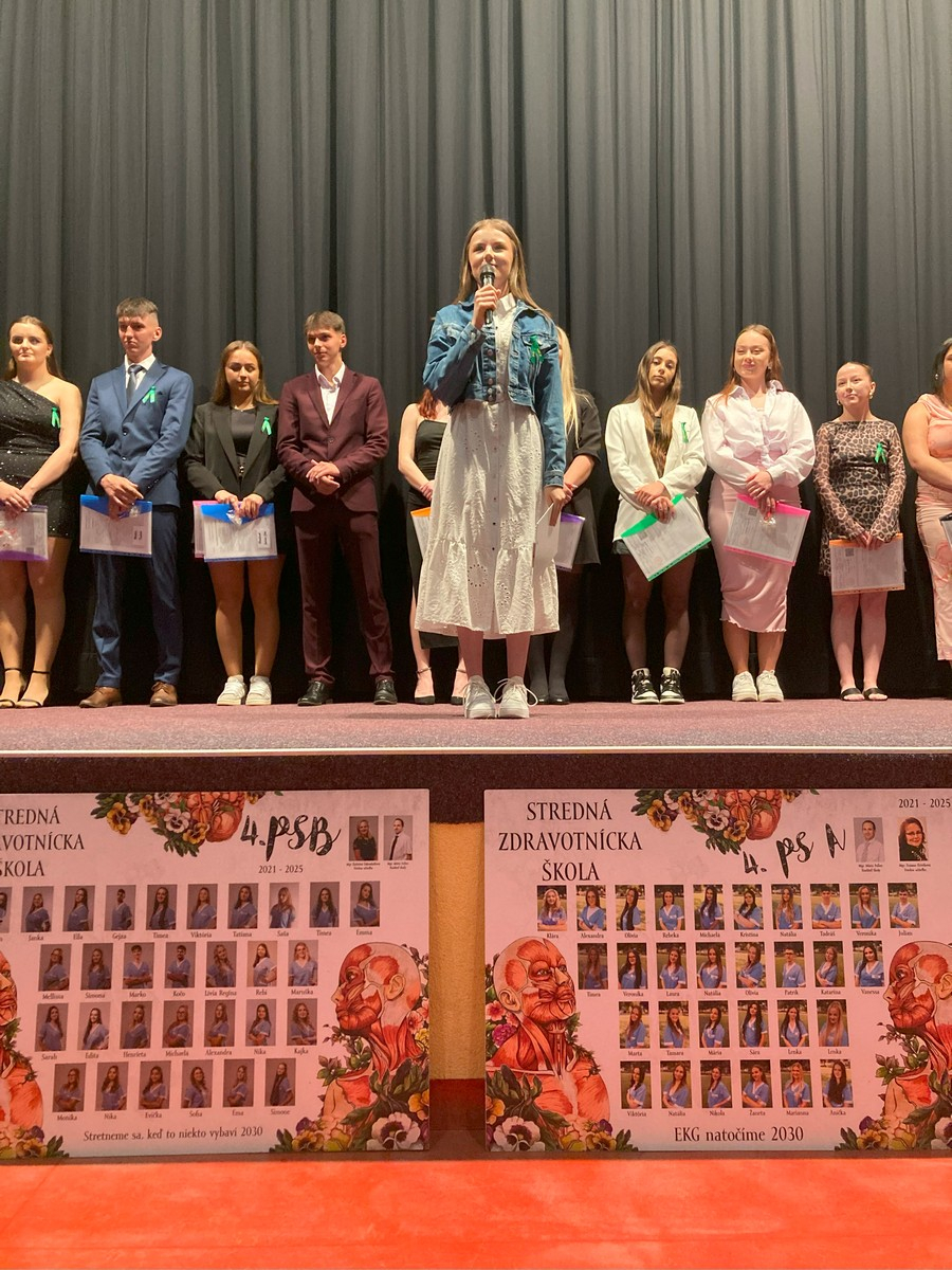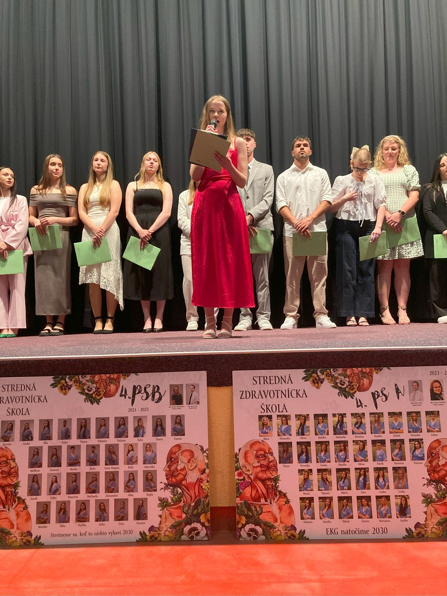 Život nie je iba o počte nadýchnutí, ale o chvíľach, ktoré berú dych, o okamihoch, z ktorých sa v mysli utkáva pavučina spomienok, spomienok na pády i výhry, sklamania i úspechy, spoznávanie i lúčenie. Všetky tieto slová by sa dali nahradiť snáď jediným krátkym slovom – škola. Čo je škola? Je to iba 5 náhodne pospájaných písmen? Vo výkladovom slovníku sa píše, že je to budova a výchovno-vzdelávacia inštitúcia. No pre nás slovo škola označuje samostatnú kapitolu v knihe života. 10. jún 2025 bol pre nás všetkých neobyčajným dňom, pretože sme do sveta dospelých vyprevadili našich úspešných absolventov. Je to koniec či začiatok? Koniec bezstarostného detstva a začiatok dospeláckeho života, nová kapitola, ktorú začínajú písať naši bývalí štvrtáci, dnes už úspešní absolventi. Mesiace a roky ubiehajú, zdá sa, že neuveriteľnou rýchlosťou, ale krásna chvíľa presvetľuje celý život, pekný okamih akoby nepodliehal času. Ján Amos Komenský povedal: „ Múdry je ten, kto má nielen vedomosti, ale aj mravné vlastnosti, kto vie správne žiť.“ Preto Mgr. Mário Felber, riaditeľ školy, na základe stanovených kritérií ocenil najlepších žiakov 4. ročníkov. Ocenenie si prevzali Timea Kolodzejová zo 4. A a Eva Ščuková zo 4. B. Obe žiačky sú vzorom pre ostatných nielen pre vynikajúci prospech, ale i dochádzku a vzorné plnenie povinností či dobré šírenie mena školy. Slávnostný okamih sprevádzal bezchybný kultúrny program, o ktorý sa postarali Stelka Skokanová a Alicka Šelepová ľudovým tancom, Natália Bartošová pantomímou a Kristína Ďuricová scénickým tancom. Začiatok či koniec? Určite jedinečný okamih, ktorý z neznámych ľudí urobil priateľov, ktorých čosi spája. Na prítomnosti je príjemná činnosť, na budúcnosti nádej a na minulosti spomienky a ako povedal John Lenon: „ Vstupujeme do neznámej budúcnosti, ale stále sme ešte tu a kým sme posadnutí životom, zostáva nádej.“ Veríme, že chvíle strávené na našej „zdravotke“ budú neoddeliteľnou súčasťou krásnych spomienok.