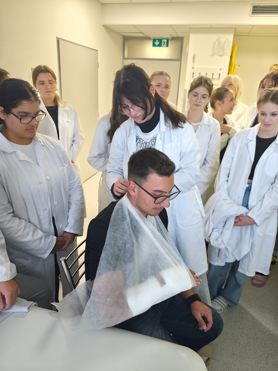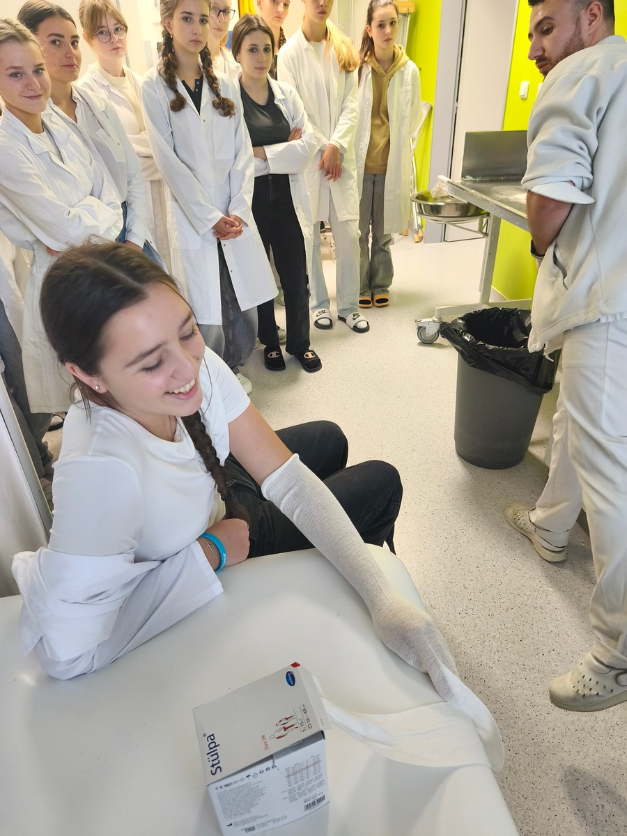 V rámci predmetu Ošetrovateľské techniky sme aj my, žiaci 1.PSA a 1.PSB, absolvovali exkurziu  v sadrovni  Nemocnice Poprad. Zoznámili sme sa s prácou odborného zdravotníckeho personálu, oboznámili sa s množstvom obväzového materiálu i procesom fixovania zlomeniny. Ďakujeme personálu sadrovne za zaujímavú praktickú ukážku.