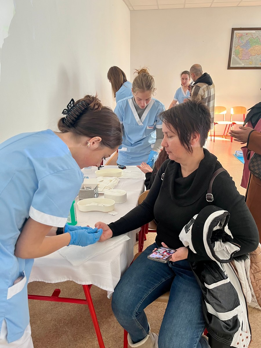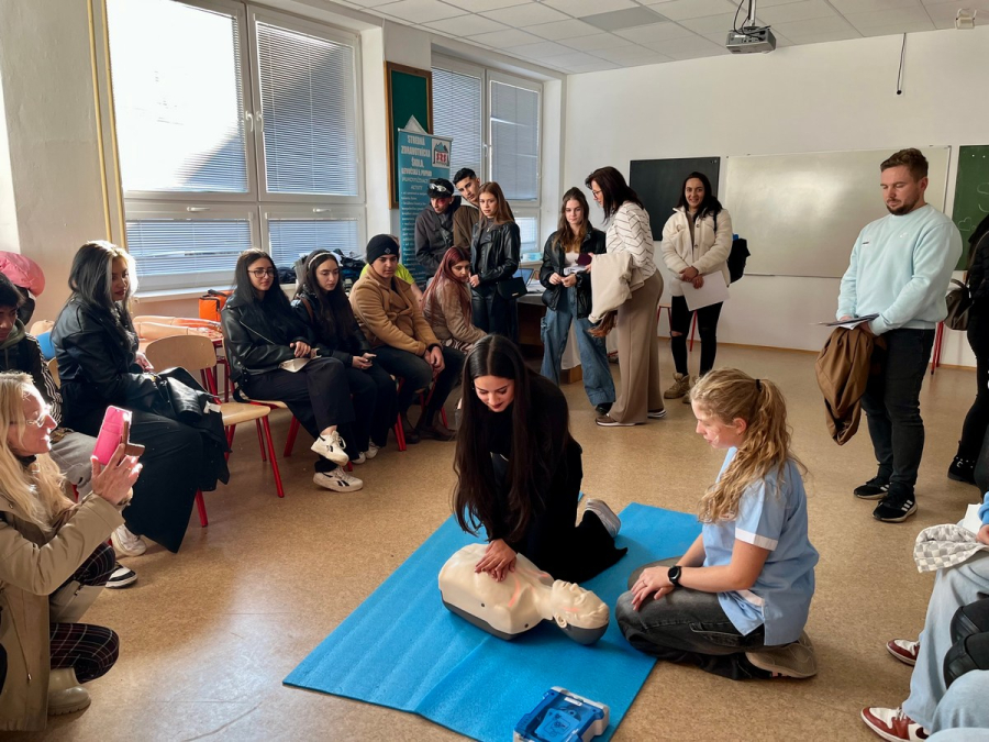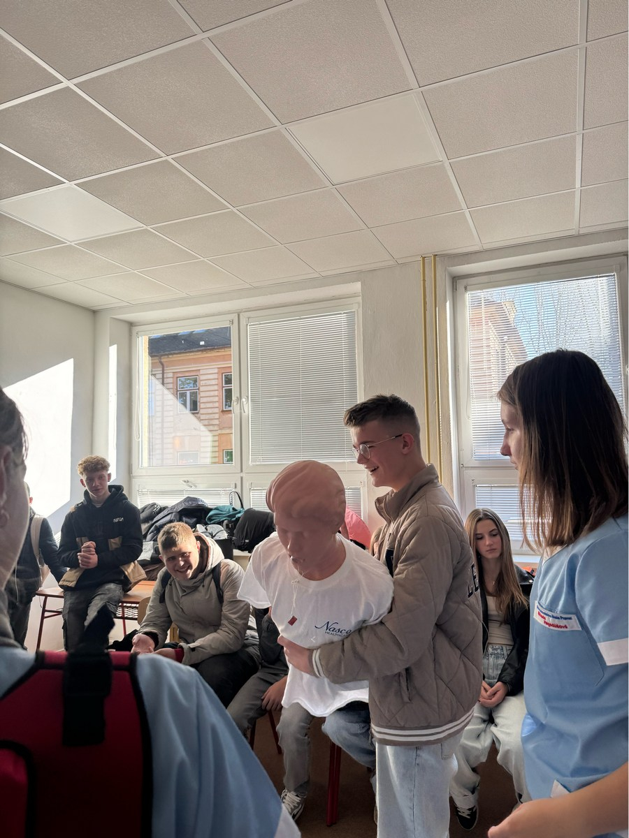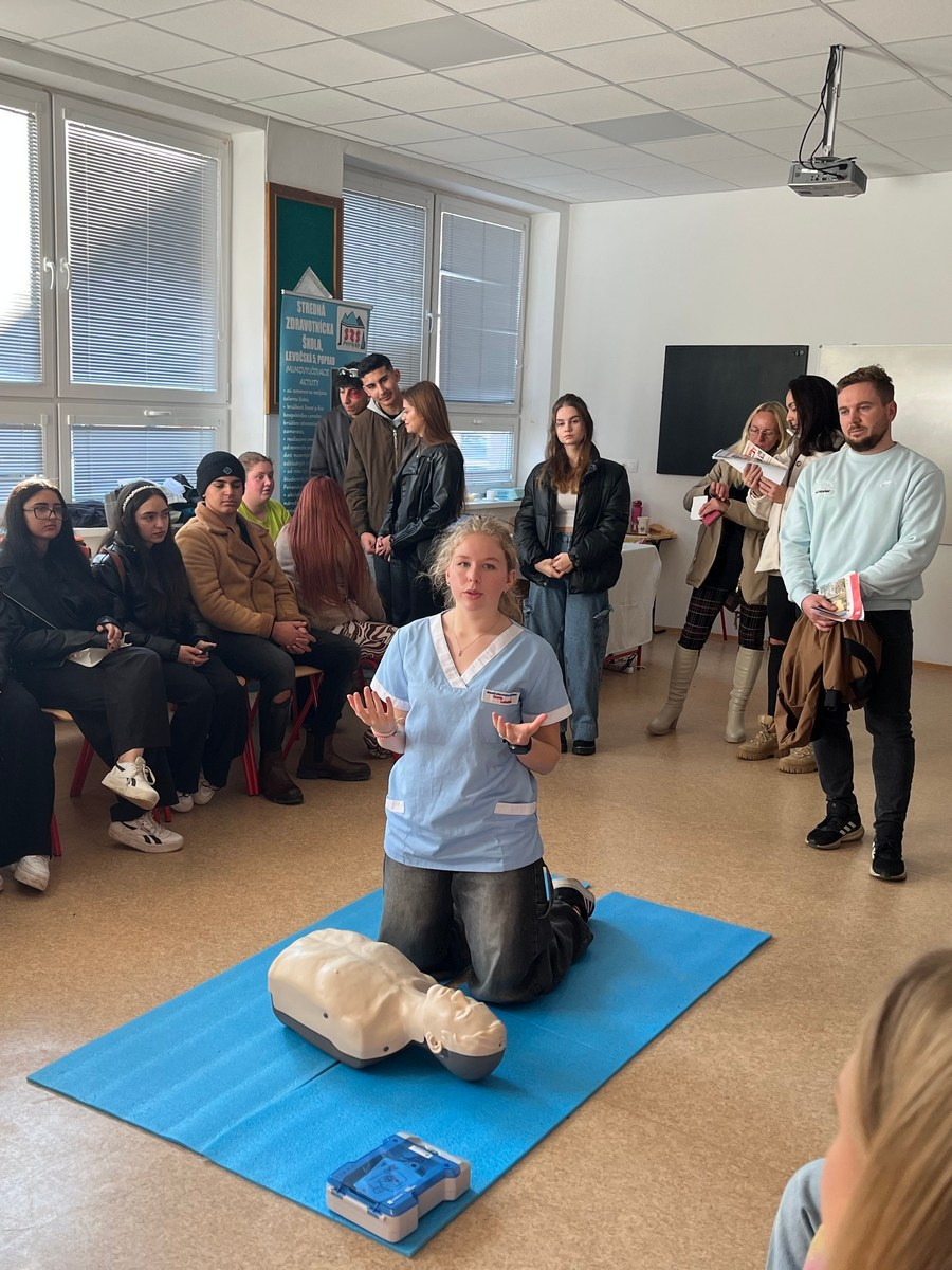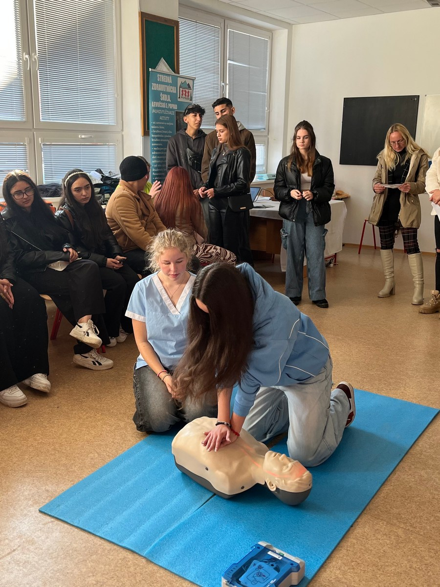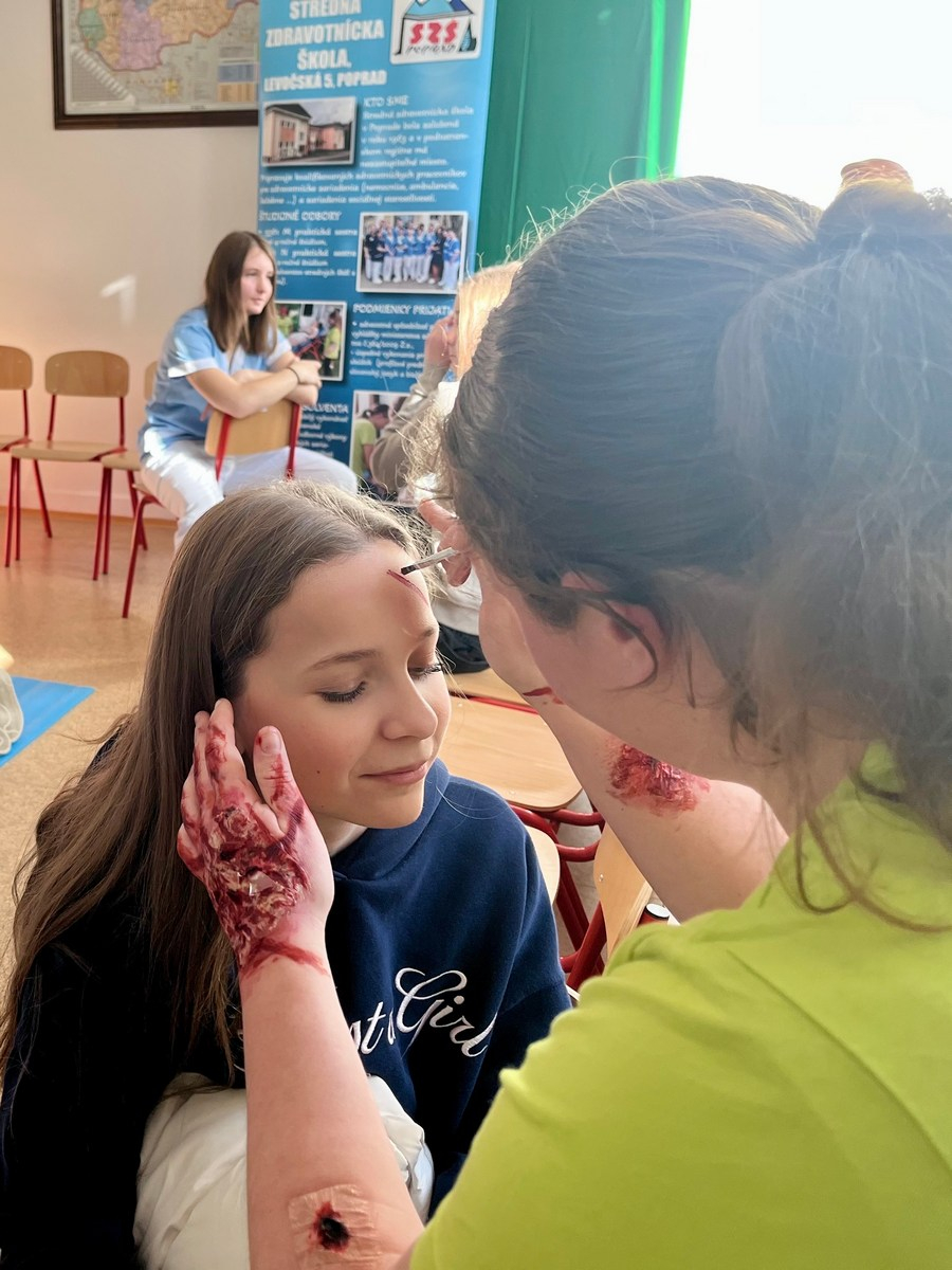 Našu školu a možnosť štúdia odboru praktická sestra prezentovali žiačky III.PSB a IV.PSB triedy. Záujemcom realisticky znázorňovali ošetrenie rán. Sprevádzajúci pedagógovia prejavili záujem o zmeranie krvného tlaku a vyšetrenie hodnoty glykémie z kapilárnej krvi.